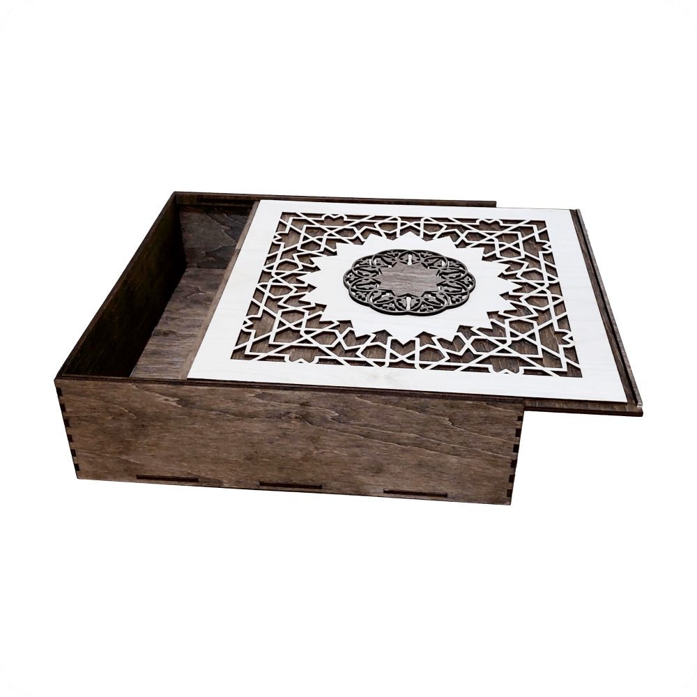 Эта деревянная коробка с восточным орнаментом — сочетание традиционного узора и современного исполнения. Украшена лазерной резьбой по дереву, вдохновлённой азербайджанскими мотивами. Идеально подойдёт для хранения подарков, сладостей, документов или украшений.