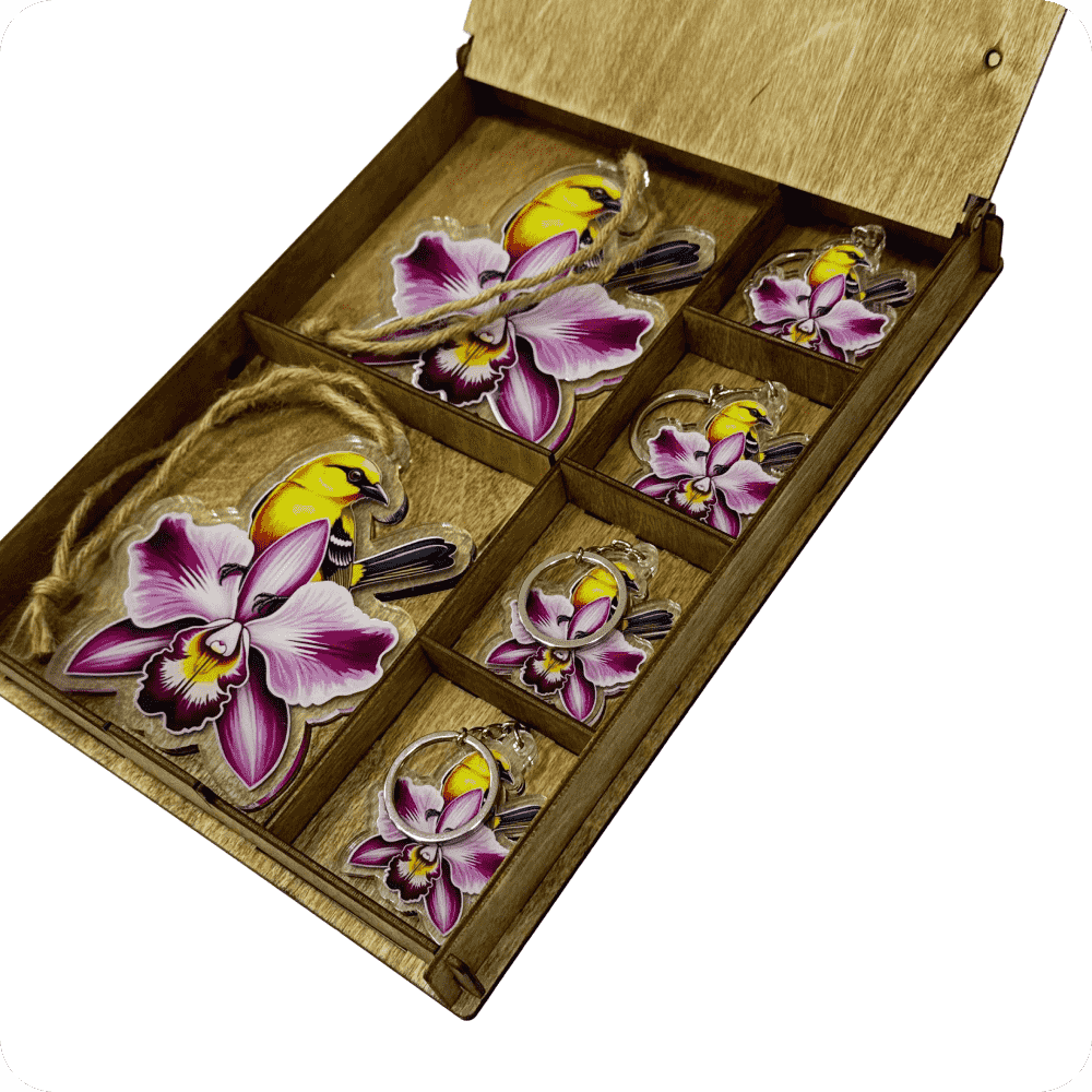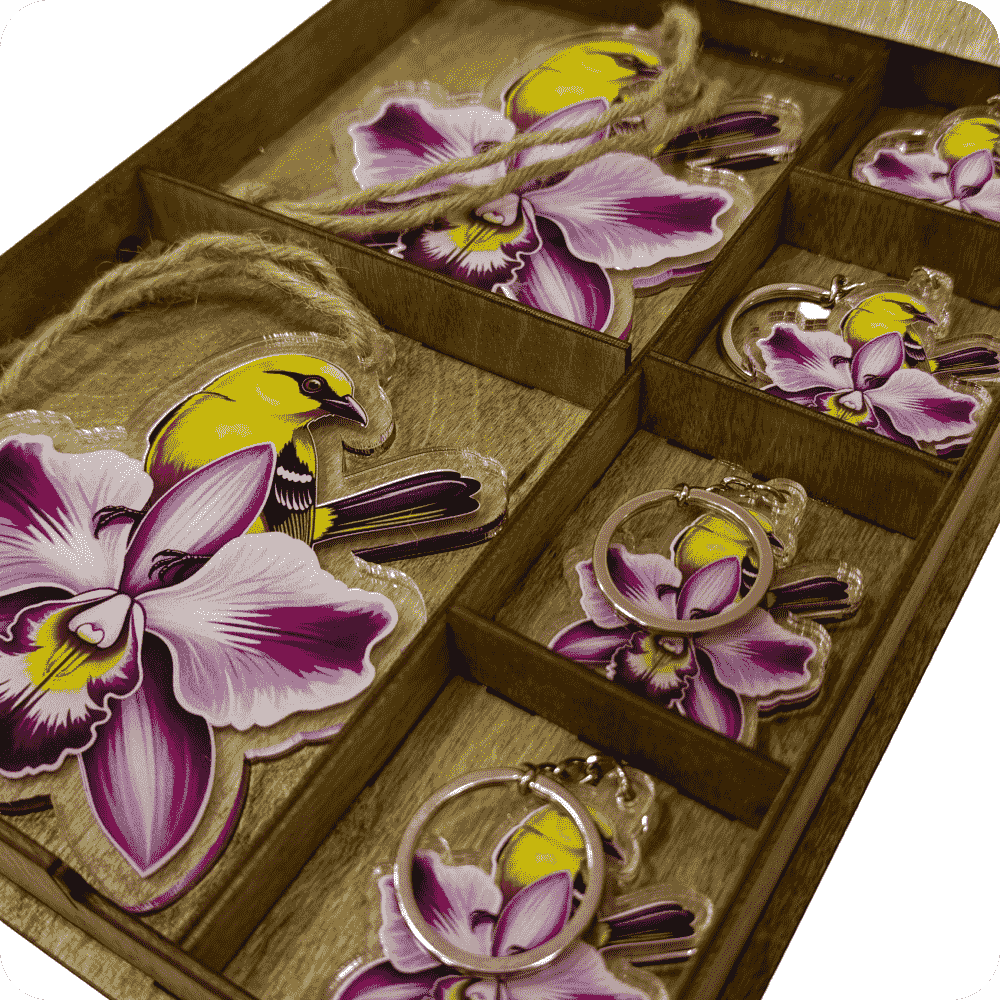 The Flor de Mayo keychain is an elegant accessory featuring an orchid and bird motif. Lightweight, durable, and perfect for daily use. Not only practical for holding keys, but also stylish enough to serve as a decorative souvenir or thoughtful gift.