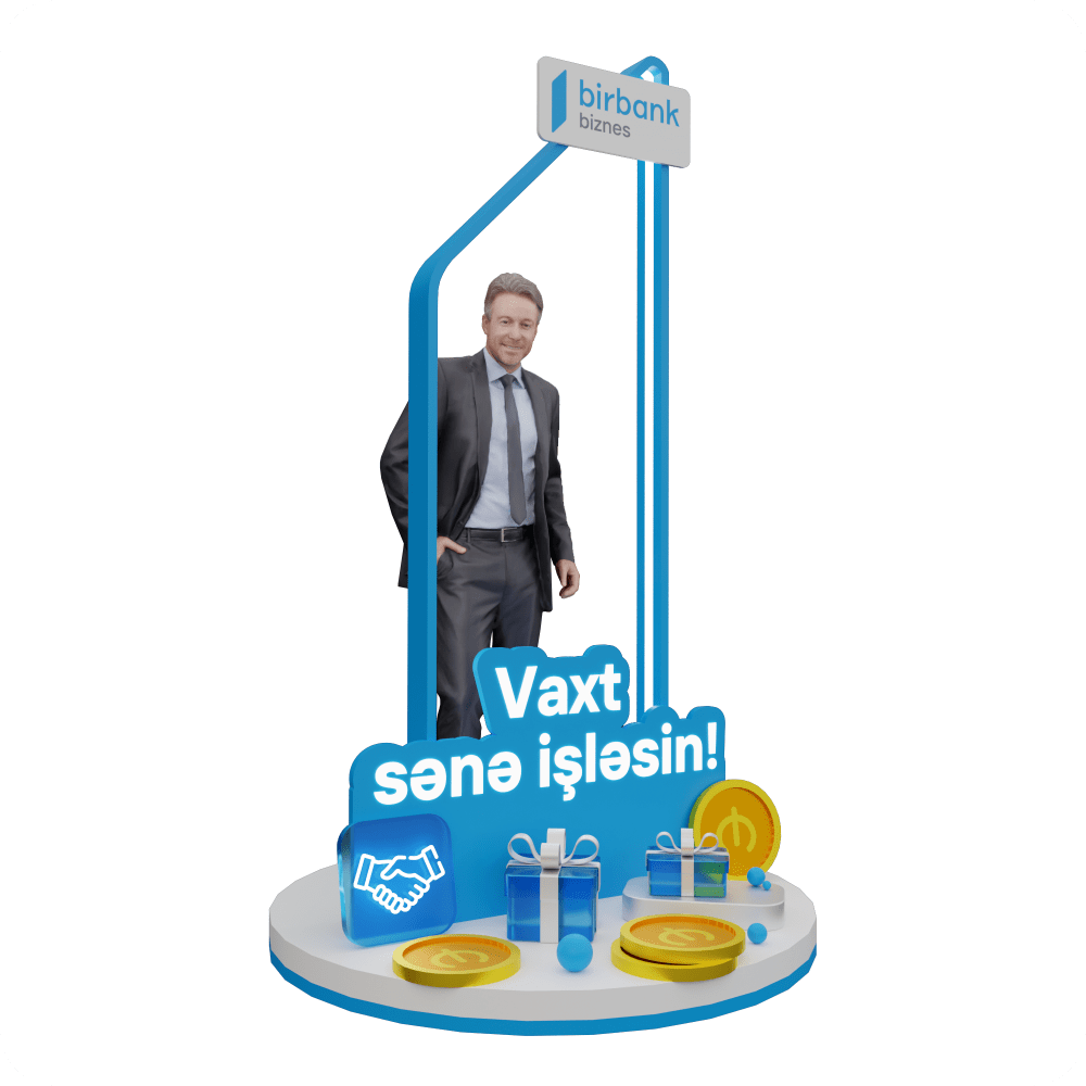 Фотозона Birbank Biznes отражает фирменное сообщение «Пусть время работает на тебя!» в современном и футуристическом стиле. Использование подсветки, 3D-элементов и корпоративных цветов создаёт динамичную атмосферу и премиальный вид. Подходит для мероприятий, выставок и рекламных кампаний, обеспечивая идеальное пространство для фото и видео.