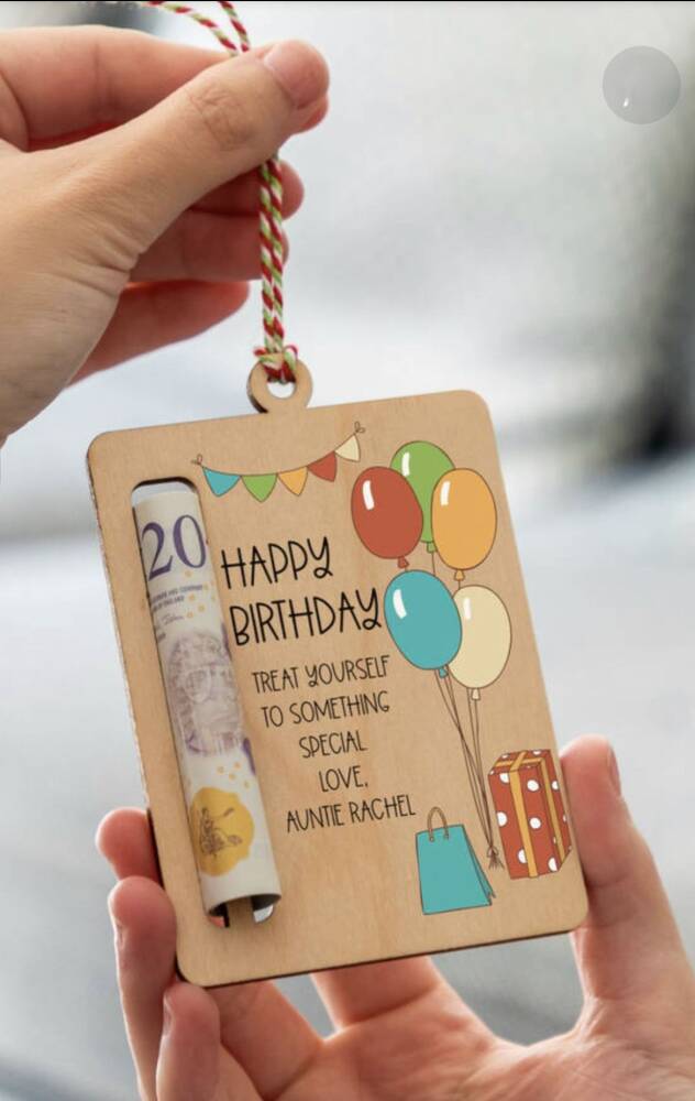 Stokda olanda mənə bildirBu ad gününə özəl taxta pul hədiyyə kartı klassik pul zərfini daha yaradıcı və yaddaqalan formada təqdim etmək üçün hazırlanmışdır. Təbii taxtadan istehsal olunan məhsul lazer kəsim və oyma texnologiyası ilə hazırlanır. Üzərində ad günü təbriki, şar və dekorativ elementlər yer alır. Pul üçün xüsusi yuvası mövcuddur və ipli asma dizaynı sayəsində həm hədiyyə, həm də xatirə dekoru kimi istifadə edilə bilər. Yazılar fərdiləşdirilə bilər və məhsul uzun müddət xatirə kimi saxlanıla bilər.