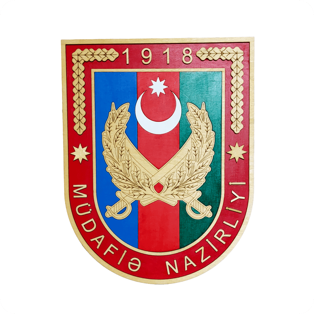 This handcrafted wooden box features the emblem of the Ministry of Defense of the Republic of Azerbaijan. Designed with precision and attention to detail, it serves as a unique decorative and commemorative piece. Ideal for official gifts, presentations, or military recognition events.